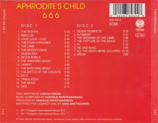 Stoc epuizatAphrodite's Child – 666, 2xCD