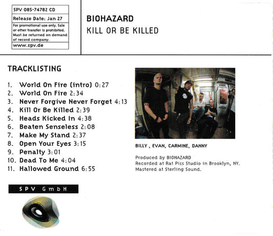 Biohazard – Kill Or Be Killed, CD Promo