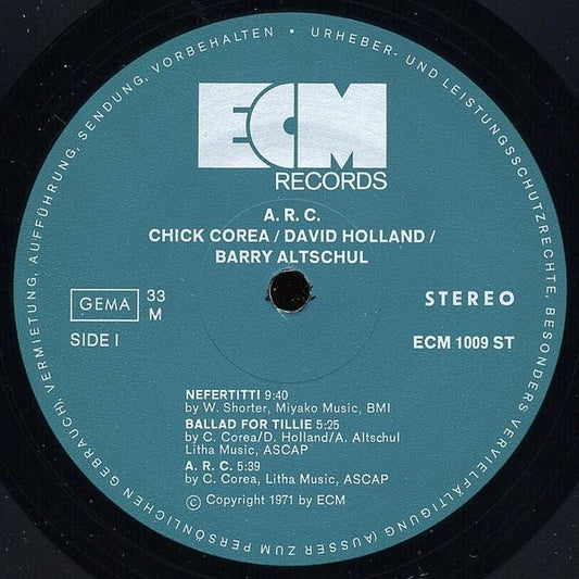 Chick Corea / David Holland* / Barry Altschul – A.R.C. , ECM