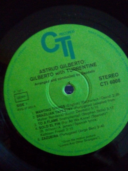 Gilberto* With Turrentine* – Gilberto With Turrentine , arranged by Deodato , Gatefold